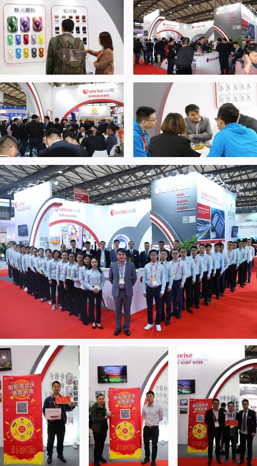 日升月沉,又是年末 时代在发展 科技在创新 我们也不曾停下前进的步伐 这一年我们流下奋斗的汗水 却也收获了累累硕果 让我们一起回顾属于旭阳的2019 1 日常篇 2月23日下午,内蒙古霍林郭勒市市长玄东升、副市长聂文辉莅临旭阳集团霍山生产基地参观考察,旭阳集团董事长朱双单陪同参观。 3月25日,合肥工业大学学生来旭阳进行见习考察。 5月15日,霍山县委副书记苏昊,县委常委、组织部长仰玉晶一行莅临旭阳集团霍山生产基地调研县工业及民营企业经济发展情况。 2019年6月2日,旭阳集团与蚌埠学院校企合作签约仪式在旭阳集团隆重举行。 7月30日,旭阳集团铜陵生产基地相关负责人带着一批降暑物资前往枞阳县横埠镇专职消防队,去慰问那里的消防队员们。 旭阳集团联合长丰县双凤开发区两家企业:合凯电气、华升泵阀,积极搭建青年交友平台,在“七夕”开展丰富多彩的单身交友联谊活动。 旭阳集团内蒙古生产基地,坐落于内蒙古霍林郭勒,于2018年破土动工,总体规划面积800亩,年规划生产能力铝粉20万吨,功能性铝颜料10万吨。2019年9月16日,旭阳内蒙生产基地二期项目正式开工建设。 9月29日,枞阳县委常委、县开发区主任梁键带领开发区一行莅临合肥旭阳调研。作为枞阳地方政府, 梁常委一行对旭阳的发展壮大表示十分的欣慰与自豪,同时,旭阳集团董事长朱双单表示,旭阳品牌从枞阳启航,必将情系家乡共谋发展,争取为家乡的建设做出更大的贡献! 10月23日上午,六安市人大常委会主任王胜,市政协主席付新安一行六十余人来霍山天易调研工业企业发展情况,县委副书记、县长赵珞,副县长李志刚等陪同调研。 秋招黄金季,为深化校企合作,助力学生就业,10月24日,旭阳集团邀请合肥学院2020届毕业生代表至合肥总部参观见习。 为完善企业人才培养战略,加强校企合作,增加大学生就业培训和实践的机会。11月20日,池州学院、蚌埠学院、安徽理工大学等高校共计26名师生来到旭阳集团开展秋季实习活动。他们的到来标志着旭阳集团“校企合作—秋季大学生实习项目”正式启动! 为促进实习生彼此沟通交流、增强团队凝聚力,12月7日,旭阳集团实习生团队在风景如画的陶冲湖公园举办了2019实习生户外拓展活动。 2 荣誉篇 5月16日,旭阳集团“一种双层包覆型水型铝颜料的制备方法”获得安徽省专利奖。 2019年6月14日,旭阳集团旗下合肥旭阳铝颜料有限公司被工业和信息化部认定为“工业企业知识产权运用试点企业”。 获得庐州产业创新团队证书(2018-3-039A)。 2019年9月9日,旭阳集团旗下安徽诚易金属新材料有限公司高新技术企业资格顺利通过复评。 11月11日上午,六安市召开了民营企业发展座谈会,市长叶露中等市领导出席本次会议。此次会议同时公布了六安市百强民营企业名单。此项排名,是根据企业年营业收入、纳税额、资产总额、从业人数、利润总额五项为参考指标进行评估认定。旭阳集团旗下分公司:安徽天易金属新材料有限公司凭借良好的社会形象、整体的经营实力,上榜“2019六安市民营工业百强”,排名六安市第58位、霍山县第5位。 2019年11月19日,由《涂料工业》杂志携手中海油常州涂料化工研究院联合举办的“传承历史·致敬未来” 《涂料工业》创刊60周年庆行业总结大会在上海浦东喜玛拉雅酒店拉开帷幕。在总结大会上,旭阳集团从众多参选企业中脱颖而出,实力荣膺主办方颁发的“卓越民族企业”大奖。 12月10日,全国石油和化工科技创新大会在北京人民大会堂召开,大会发布并表彰了2019年度中国石油和化工行业科技创新的获奖单位和个人。旭阳集团荣获2019年度“中国石油和化工行业技术创新示范企业”荣誉称号;由旭阳集团和合肥工业大学、安徽大学等共同合作完成的“高性能铝颜料制备关键技术研发及其在镜面油墨中应用”课题荣获“科技进步奖”三等奖。 旭阳集团旗下合肥旭阳铝颜料有限公司和安徽天易金属新材料有限公司顺利通过两化融合体系认证。 2019年12月24日,合肥旭阳铝颜料有限公司顺利通过知识产权管理体系认证。 2019年12月26日,旭阳集团旗下诚易金属新材料有限公司被认定为2019年安徽省“专精特新”中小企业。 3 展会篇 4 年会篇 7月24-28日,旭阳集团年中总结分享大会在发源地花山召开。历经二十余年发展,旭阳已发展成为坐拥5大生产基地、800余名员工的大型企业,此次共300余名员工代表出席年中总结分享大会,会议旨在凝聚思想、不忘初心,总结2019上半年的成功与不足,明确2019下半年度集团目标! 2019年12月27日,旭阳集团2019年终总结暨2020迎新动员大会在发源地花山开幕!来自全国各地的集团分公司、销售办事处共计277名参会代表齐聚一堂,总结2019,规划2020!同时,迎新晚会如约而至,集团各部门带来了精彩纷呈的节目,展示了公司员工良好的精神风貌和时代风采。还有激动人心的抽奖环节,将晚会一次次推向高潮,大家共同挥别过去,迎接更加美好的未来!